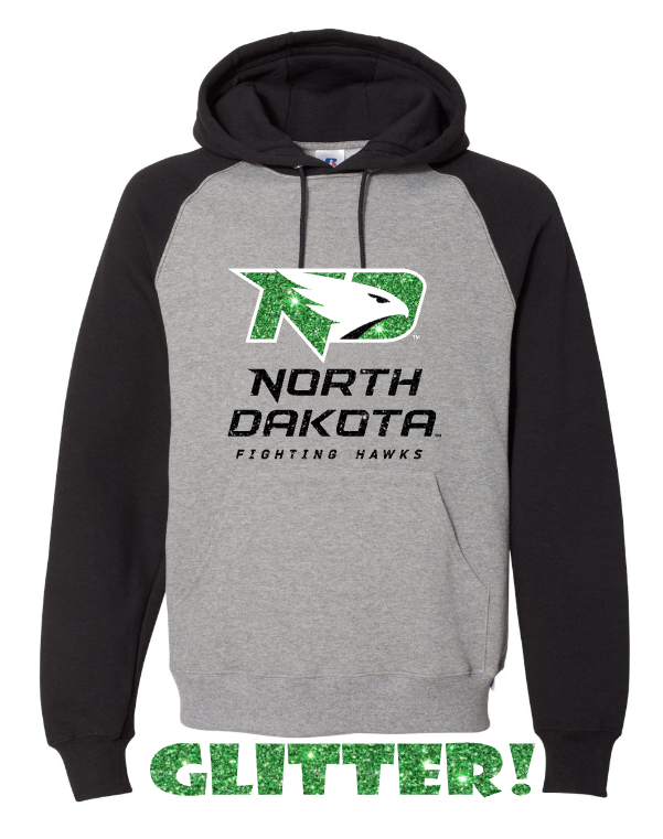 *UND Football Hoodie - Dri Power Colorblock Raglan Hooded Sweatshirt - Glitter